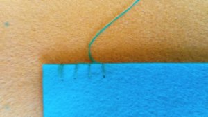 Alulról felfelé bökök a tűvel, majd a cérnát áthúzva megint alulról bökök az előzőtől körülbelül fél centire. A cérna így egy hurkot képez, amin hátrafele áthúzom a tűt, majd megfeszítem a cérnát.